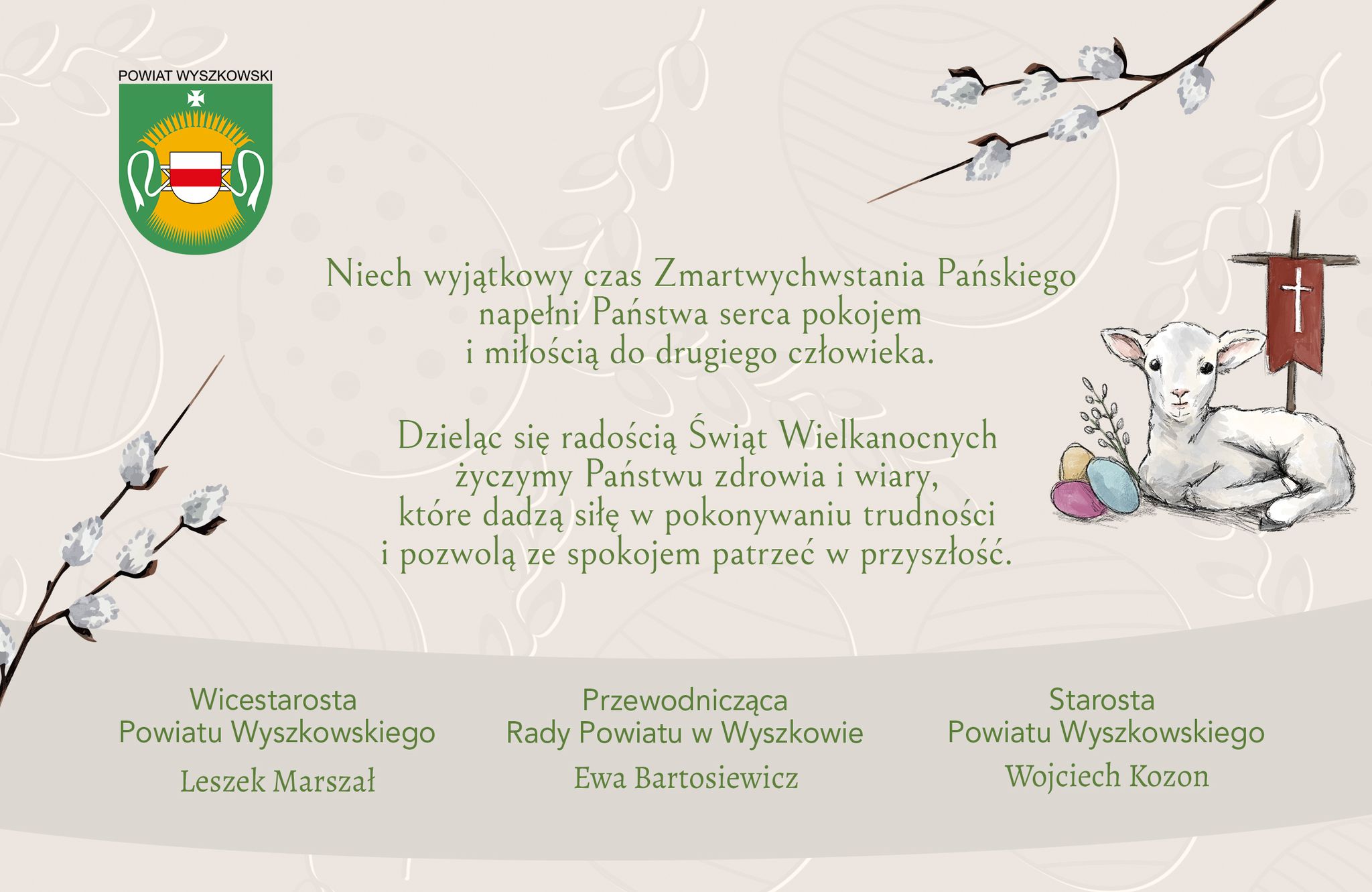 Niech wyjątkowy czas Zmartwychwstania Pańskiego napełni Państwa serca pokojem i miłością do drugiego człowieka. Dzieląc się radością Świąt Wielkanocnych życzymy Państwu zdrowia i wiary, które dadzą siłę w pokonywaniu trudności i pozwolą ze spokojem patrzeć w przyszłość.