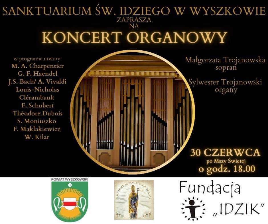 Sanktuarium św. Idziego w Wyszkowie zaprasza na koncert organowy 30 czerwca 2024 r. po Mszy Świętej o godz. 18.00.