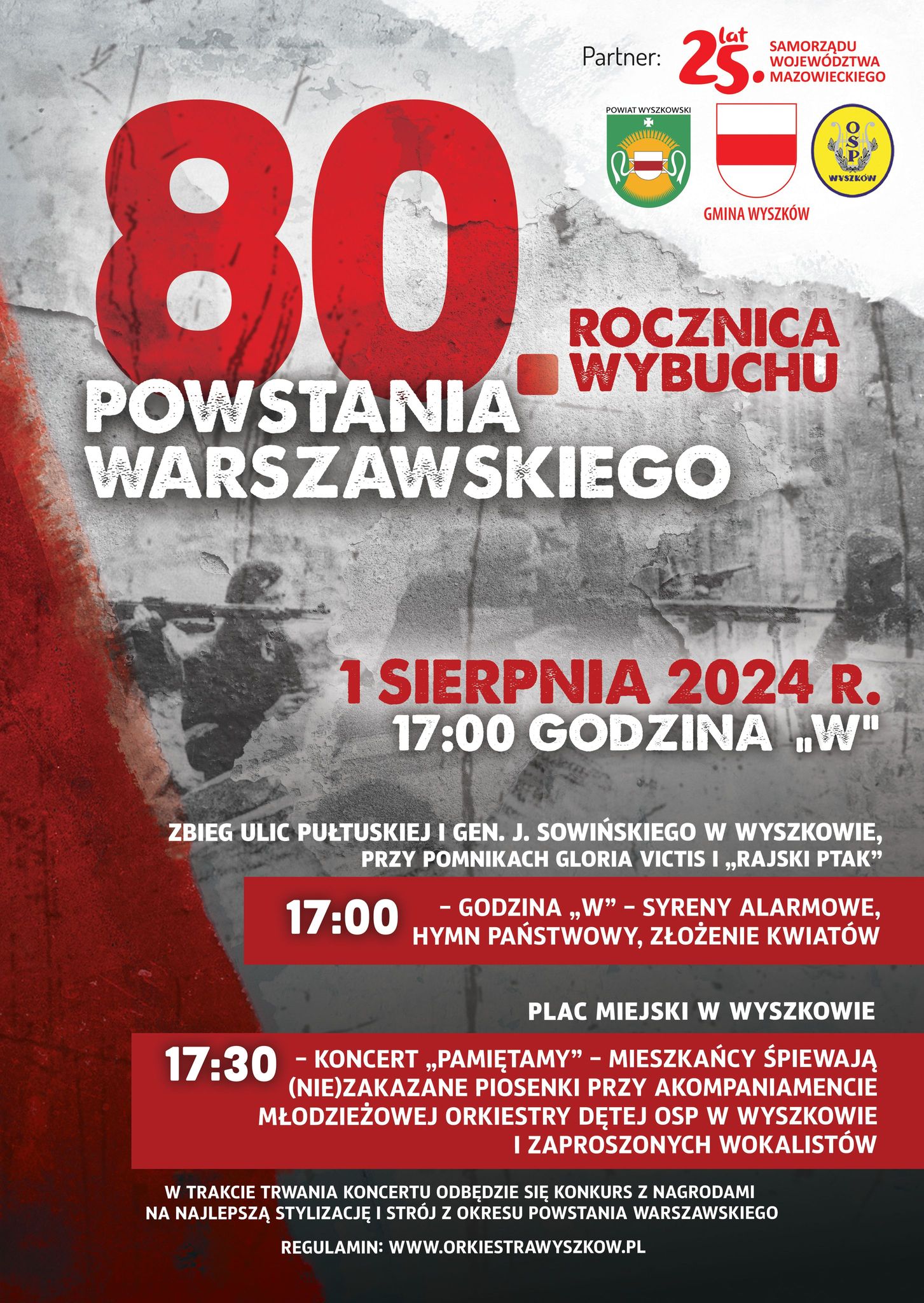 1 sierpnia tradycyjnie oddamy hołd bohaterom Powstania Warszawskiego. Zachęcamy mieszkańców do wzięcia udziału we wspólnych obchodach 80. rocznicy wybuchu Powstania Warszawskiego.